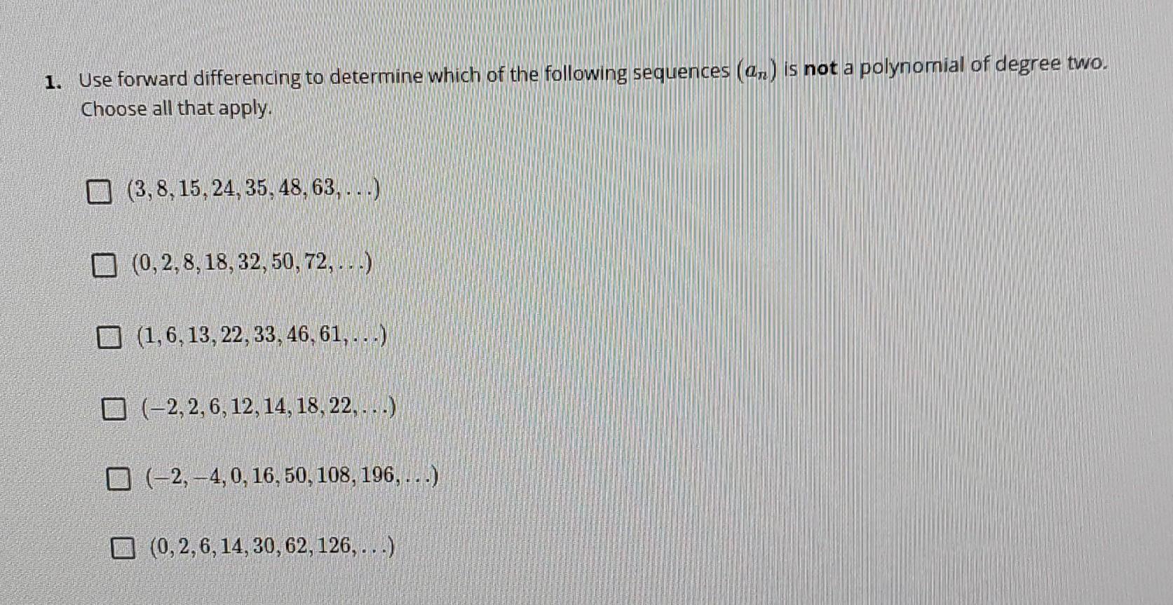 Solved 1 Use Forward Differencing To Determine Which Of The Chegg Com